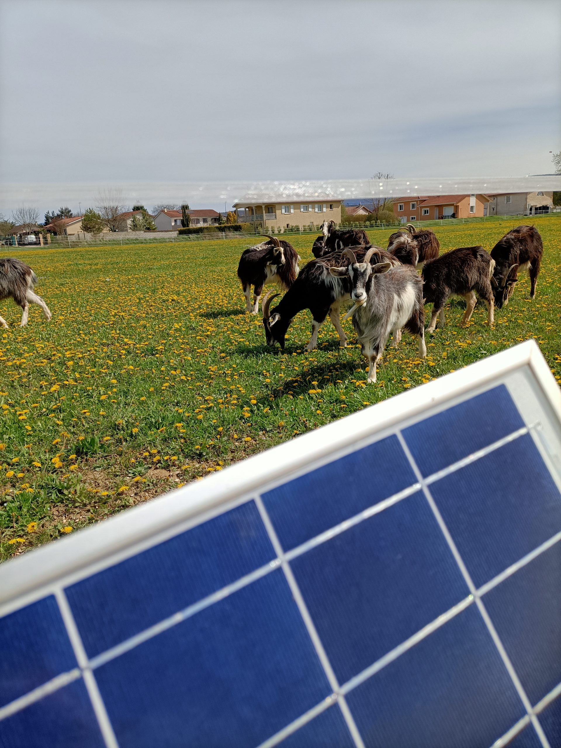Lundi 11 avril 2022, Nicolas Adriaens de la société Vitagreen est venu lancer le chantier d’eco-pâturage sur le site de Pont d’Ain épaulé de 14 de ses tondeuses écologiques, en l’occurrence des chèvres du massif central. Reconnue pour leur rusticité et leur adaptabilité, elles vont consommer aussi bien l’herbe de prairie que l’ambroisie. Cette phase de test va permettre de réaliser une mise en situation concrète sur le futur site de la ferme photovoltaïque.